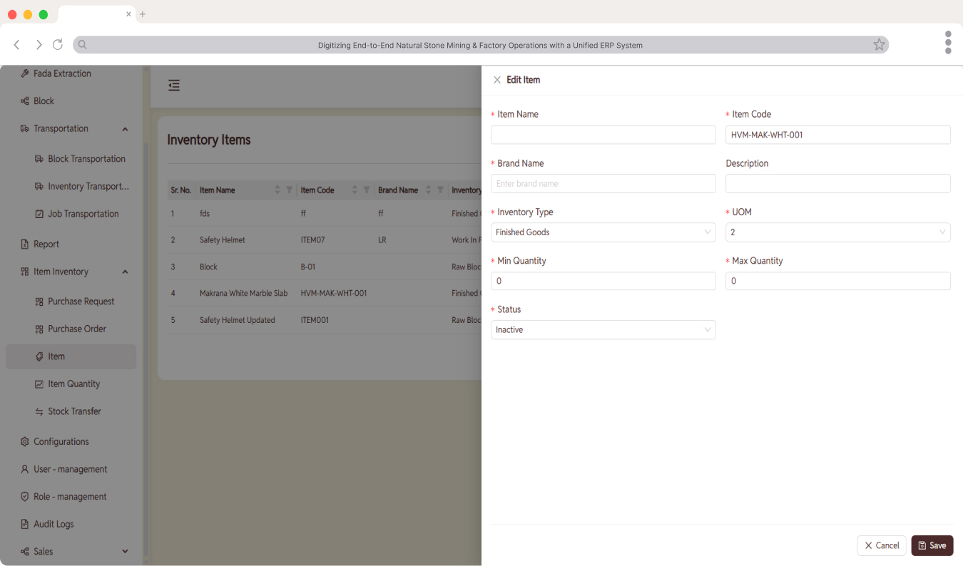 Digitizing End-to-End Natural Stone Mining & Factory Operations with a Unified ERP System